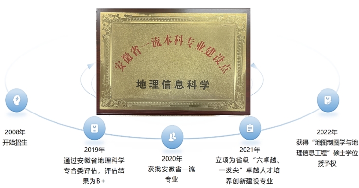beat365在线唯一官网地理信息科学专业于2008年开始招生。2019年通过安徽省地理科学专合委评估,2020年获批安徽省一流专业建设点,2021年立项省级“六卓越、一拔尖”卓越人才培养创新建设专业。现拥有“地图制图学与地理信息工程”和“资源与环境”硕士点。