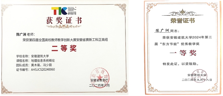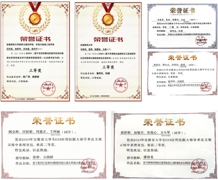 近年来,本专业先后获评安徽省教学成果二等奖3项、三等奖4项,获批“遥感基础与图像处理”国家级一流课程、安徽省AI+教育智慧课程等省级一流课程3门,安徽省重大或重点等教学研究项目20多项,公开发表教研论文20余篇。编写出版教材3部,其中省级规划教材2部。专业先后承担国家自然科学基金项目2项,安徽省重点研究与开发计划项目1项,其他省部级科研项目20余项,出版学术专著2部,在SCI、CSCD等核心期刊发表科研论文100余篇,获安徽省科学技术一等奖1项,二等奖1项,三等奖1项。在农业遥感、城市体检、耕地保护、湿地遥感、水环境遥感等领域承担社会服务项目30余项,到账经费达800余万元。