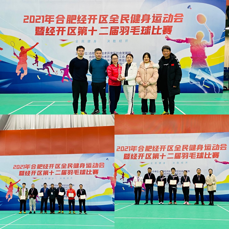 beat365官网教职工羽毛球队在合肥市经开区第十二届羽毛球比赛中喜获佳绩