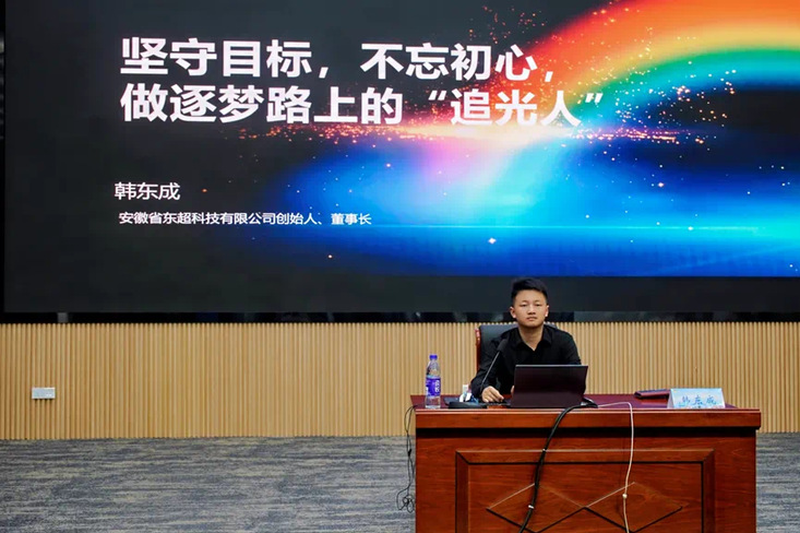 在此期间,2025年度中国青年五四奖章获得者、安徽省东超科技有限公司董事长、beat365官网校友韩东成作为主讲嘉宾,分享了自己充满艰辛与拼搏的创新创业之路,并在会后与beat365官网青年学子近距离接触交谈,勉励大家珍惜时光、勤奋努力、科技报国。