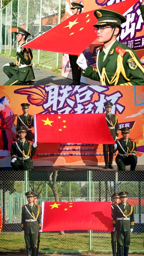 当篮球的激情遇上国旗的庄严,校BA开幕式更添别样风采。国旗护卫队队员精神抖擞,护送国旗稳步入场,让赛场瞬间沉浸在肃穆的氛围中。体育精神与爱国情怀在此刻交融,既彰显了青春的活力,更传递了护卫国旗的坚定信念。