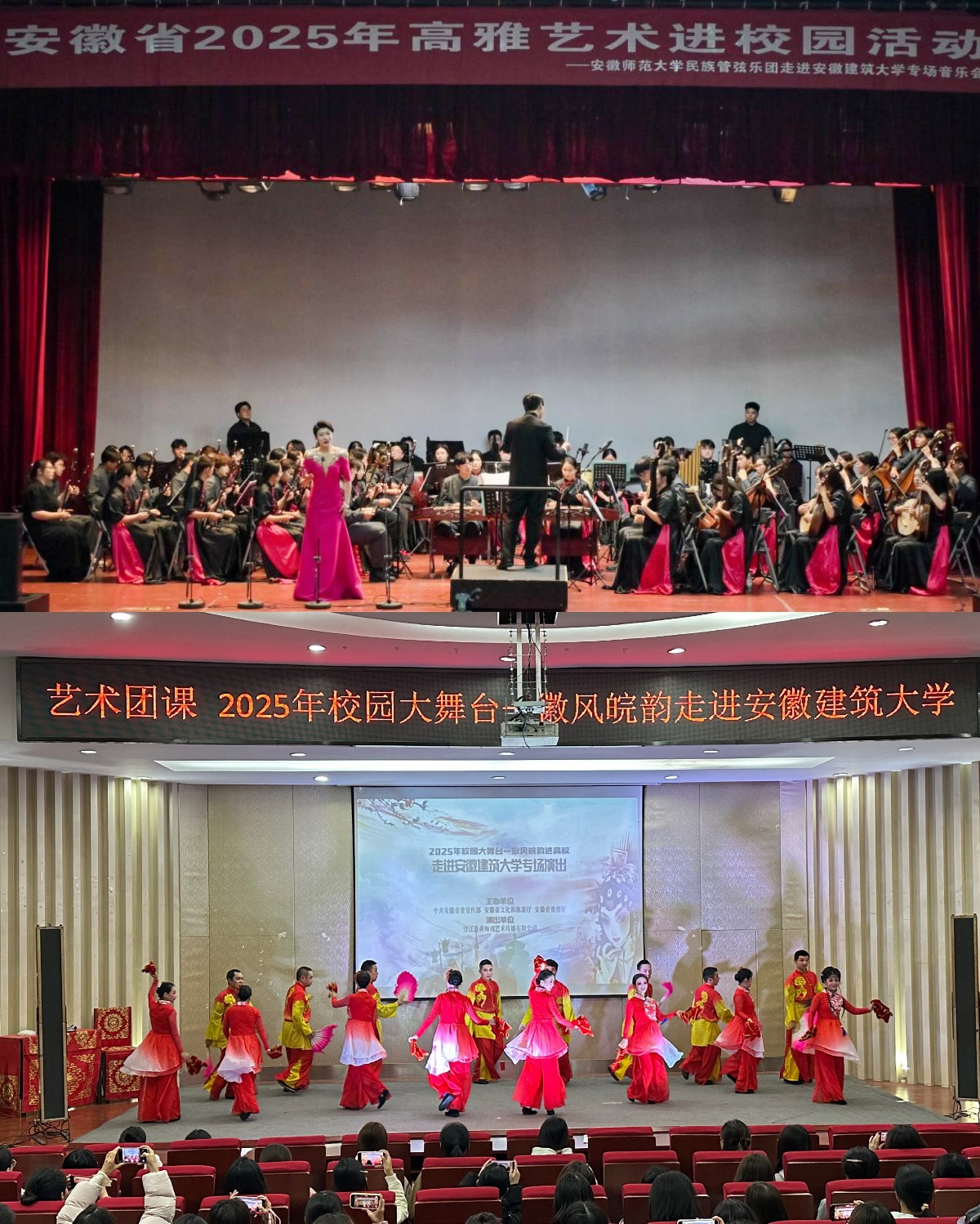 突出“体验性”,多元课堂满足个性需求。校团委持续整合美育资源,打通二级学院、大学生艺术团、公共艺术俱乐部、学生社团之间的协同渠道,不断丰富艺术实践平台的形式与内涵。目前已建成涵盖音乐、器乐、朗诵、表演等类别的艺术俱乐部,开设了层次分明、内容丰富的课程体系,包括形体训练、古典舞蹈表演、器乐演奏、话剧表演、朗诵基础等11门课程。同时,积极与中国交响音乐季艺术中心、安徽艺术学院等单位建立合作关系,搭建资源共享平台,引进优质美育资源,并先后承办“高雅艺术进校园”“徽风皖韵进校园”等一系列高水平演出活动,进一步拓展美育实践的高层次平台。