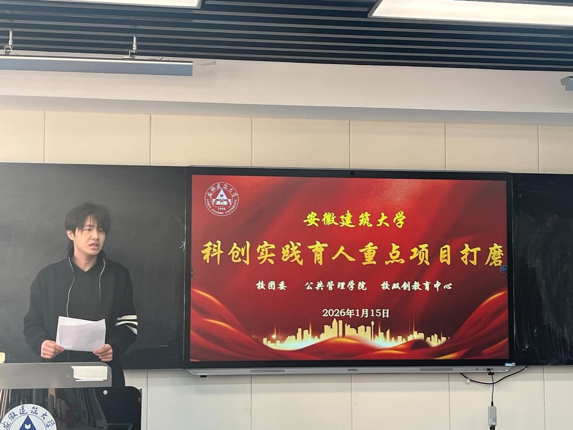 本网讯 1月15日下午,“科创实践育人重点项目打磨”活动在公共管理学院(金寨路校区F楼523教室)举行。校团委书记丁超,公共管理学院副院长王秉义,经济与管理学院副院长章蓓蓓,校内外专家,重点辅导项目师生成员参加活动。