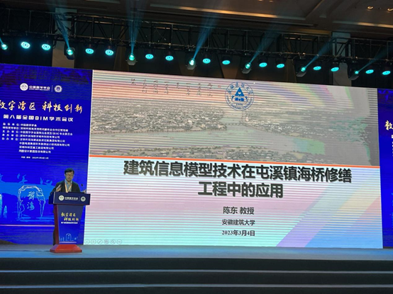 本网讯:3月4日至5日,土木工程学院副院长陈东带队赴深圳市前海合作区参加第八次全国BIM学术会议并受邀作题为《建筑信息模型在屯溪镇海桥修缮中的应用》的专题报告,建筑工程系和安徽省BIM工程中心部分青年骨干教师随行参会。本次会议由中国图学学会举办,主题为“数字湾区 科技创新”,重点探讨了BIM技术与CIM、人工智能、物联网等前沿技术的融合创新、新一代信息技术在建筑业的深度应用、粤港澳大湾区BIM相关行业的协同发展等议题。