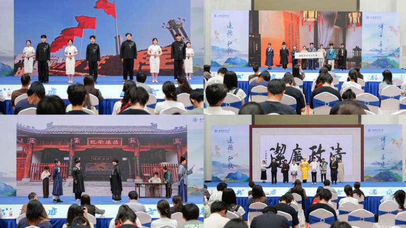 大赛自启动以来,得到全校师生的积极响应,11个学院精心筹备,通过初赛选拔,最终14个作品入围决赛。节目以《诗经》《楚辞》、唐宋诗词及现当代经典文学为载体,巧妙融入朗诵、吟唱、情景剧、舞蹈、书法等多元艺术形式,将“廉”的精神内核与“诗词”的审美意境有机结合,生动展现了中华经典的时代价值与育人功能。