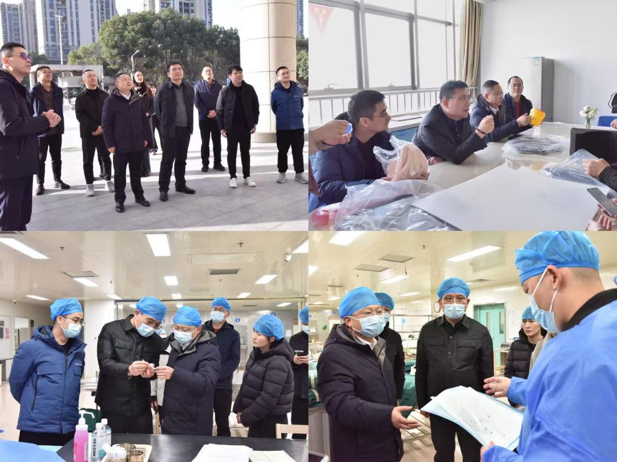 在安徽医科大学第五附属医院院长杜瀛瀛等院领导陪同下,高跃峰一行先后深入医院消毒供应中心、药剂科静配中心、中心手术室、骨科二病区等重点科室,实地考察诊疗环境、医疗设备配置及临床应用场景。调研团队重点关注医疗防护材料、手术器械耗材的实际应用,医护人员详细介绍了防护服装的防护等级、灭菌流程及临床痛点,双方就提升材料耐用性、抗菌性等关键性能深入交流;在临床科室,调研团队还了解了生物医用材料等应用需求,明确了后续科研攻关方向。