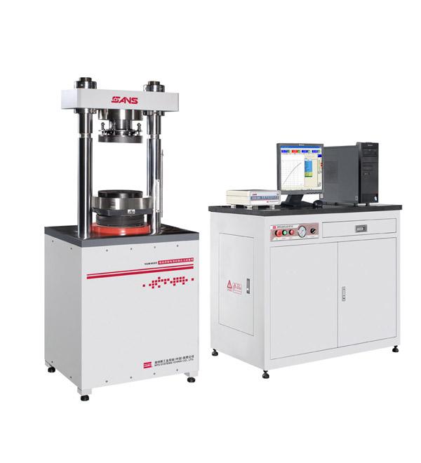 YAW系列微机控制电液伺服压力试验机具有力闭环的伺服控制功能,能够实现等负荷加载。试验力全程不分档,全程一个分辨力。试验力分辨力优于10N、试验力示值相对误差±1%以内、试验量程范围2%-100%FS。电气控制、软件操作满足GB/T50081-2002普通混凝土抗压强度试验方法,尤其适合于要长时间连续工作的试验场所。可实现长时间保持载荷、保载精度高,可设定复杂的压缩试验程序。配置相应夹具可满足其它标准的抗压试验要求。试验软件内置美特斯标准网络接口,试验数据可通过此标准接口传输给网络,软件说明书和帮助文档中对此接口有详细说明和使用配置方法,网络软件通过此接口可与试验软件进行数据交换和传输。