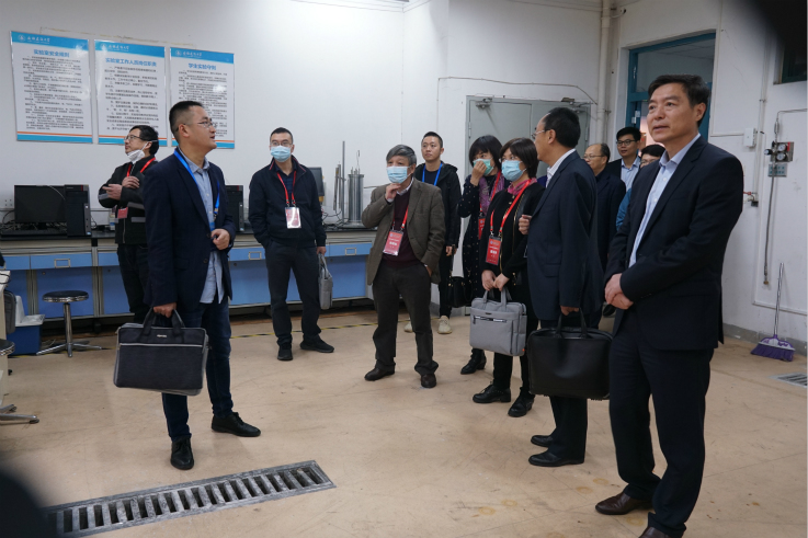 专家组一行在校党委常委、副校长黄显怀的陪同下,现场考察了学校的工程实训中心、化学化工实验中心、高分子专业实验室以及现代分析测试中心等实验实践教学场所和设施,了解关于专业建设硬件支撑和相关实验运行情况。
