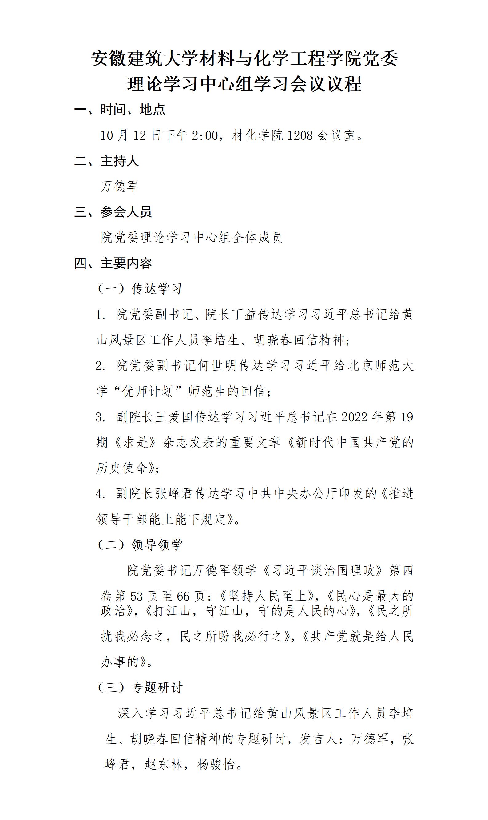beat365在线唯一官网材料与化学工程学院党委 理论学习中心组学习会议议程