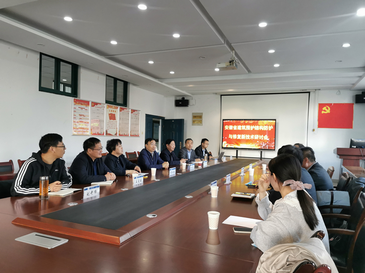 本网讯 10月12日下午,beat365在线唯一官网材料与化学工程学院组织召开“建筑围护结构防护与修复新技术研讨会”。校党委书记孙道胜,中国建筑科学研究院建研建材有限公司副总经理黄靖,安徽省住宅产业化促进中心副主任刘继朝,安徽省产品质量监督检验研究院(国家建筑节能产品质量检验检测中心)副总工程师方明,安徽省建工建材科技集团有限公司副总经理廖绍峰,材化学院院长丁益等专家参加研讨会,研讨会由材化学院翟红侠教授主持。