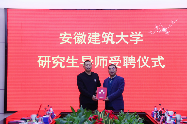 蔡国军对安徽苏亚建设集团有限公司及校友吴德雨总经理长期以来对学校建设和发展所给予的大力支持表示感谢,从历史沿革、人才培养、办学成效等方面介绍了学校发展和取得成果,向吴德雨受聘校外导师表示祝贺,并为其颁发聘书。希望进一步增进科研合作、拓宽合作方式、深化合作力度。互惠双赢,资源共享,在校企合作方面取得更好成果。