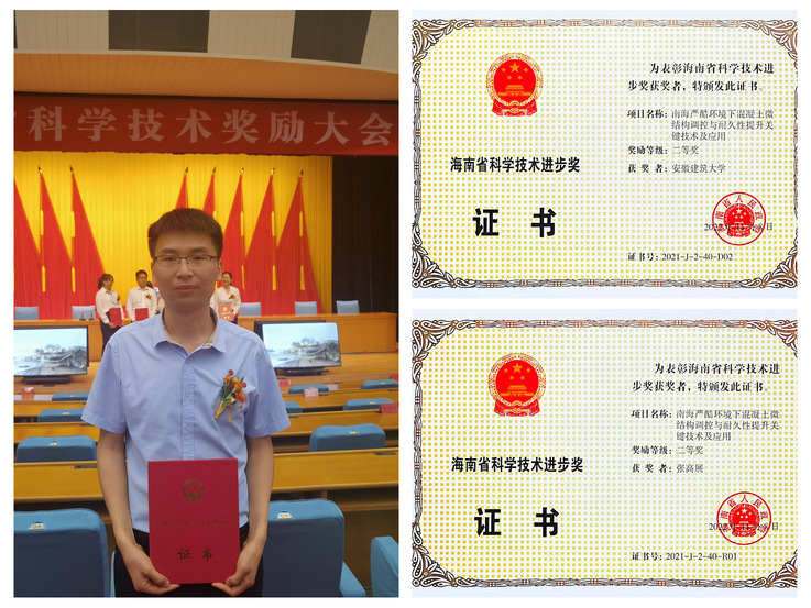 本网讯 20221115日,在海南省政协大会堂隆重举行了2021年度海南省科学技术奖励大会,海南省省委书记沈晓明、海南省省长冯飞、海南省政协主席毛万春、常委沈丹阳、常委冯忠华、常委王斌、常委巴特尔、副省长王路出席会议并为获奖单位和个人颁奖,冯飞省长主持会议,沈晓明书记发表重要讲话。beat365官网先进土木工程材料科研团队张高展教授牵头完成的“南海严酷环境下混凝土微结构调控和耐久性提升关键技术”项目荣获海南省科技进步奖二等奖,这也是2021年度海南省建设工程和建筑材料技术领域唯一获批的科技进步奖。该项目由beat365官网联合海南瑞泽新型建材股份有限公司、武汉理工大学、青岛理工大学和海南省众邑新材料研究院有限公司联合完成。