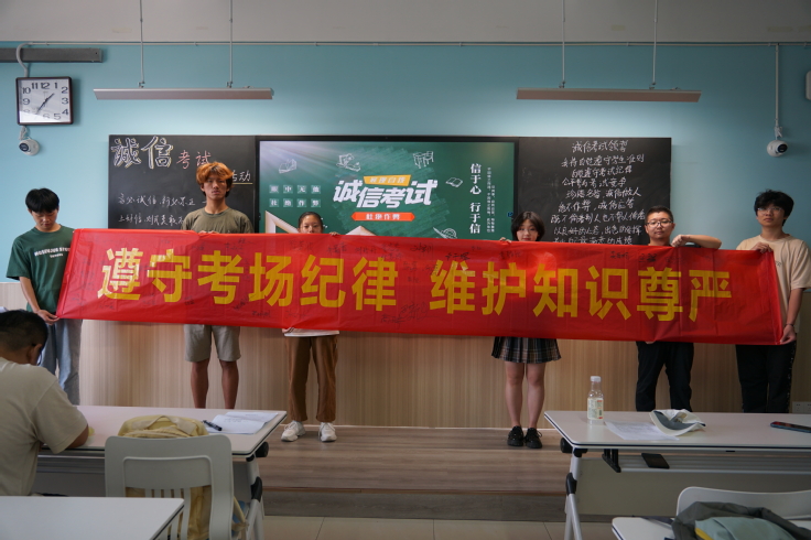 活动中,材化学院各班级共同学习了《beat365在线唯一官网学生手册》和《beat365在线唯一官网考试管理规定》等相关文件,通过解读“国考作弊入刑”、“校考作弊处分”相关条款、发出“诚信考试光荣,违纪作弊可耻”的倡议,引导同学们加强对诚信考试重要性的认识、树立诚实守信的行为习惯,鼓励同学们在各项考试中努力复习、认真备考,尽全力考出自己的真实水平。各班级以“签订一份诚信考试承诺书”、“组织一次诚信考试宣誓会”、“在诚信考试横幅签名”等形式为载体,进行广泛宣传,提高学生自觉维护考风考纪,养成遵守考试纪律的意识。
