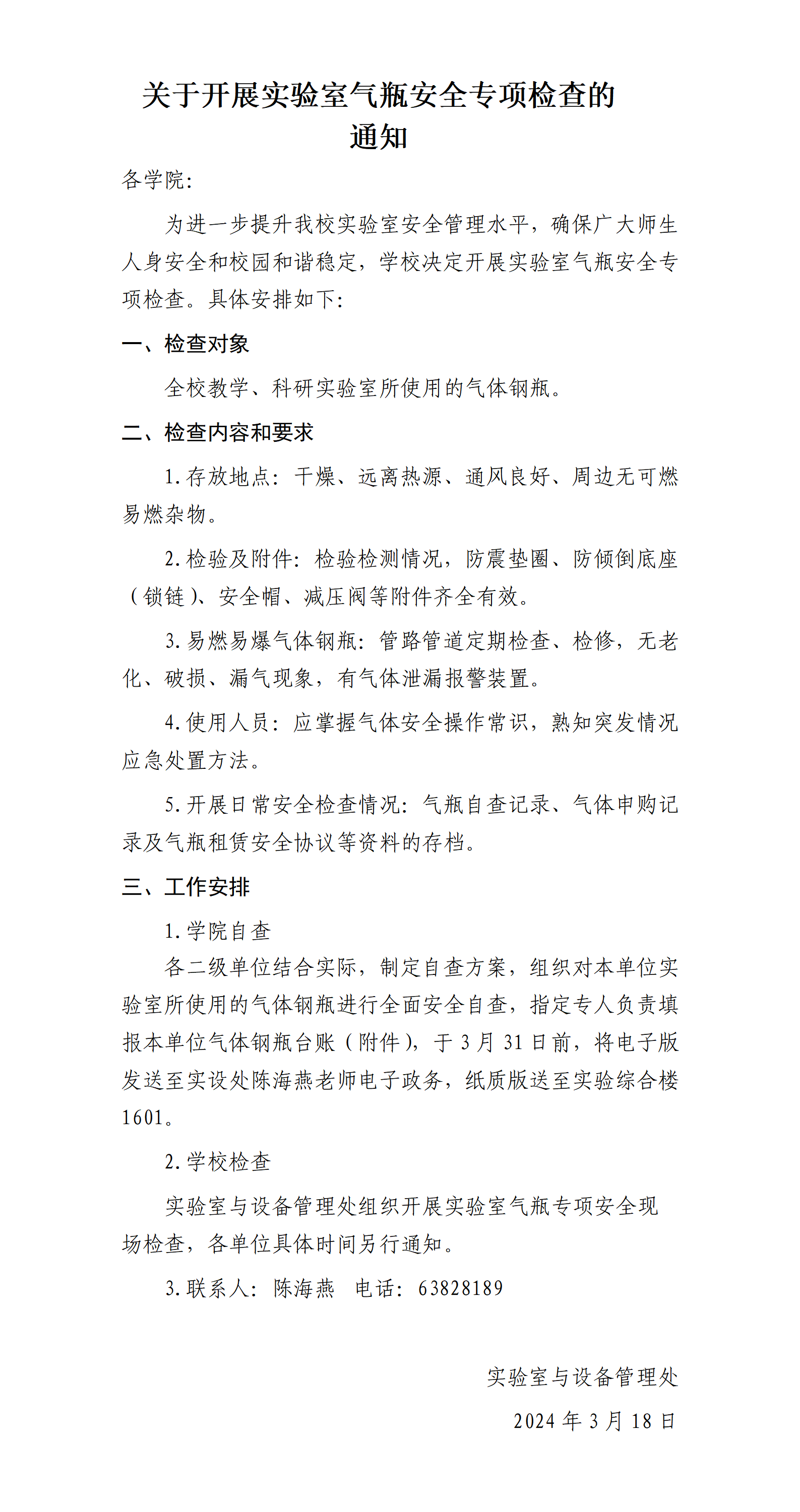 转发《关于开展实验室气瓶安全专项检查的通知》