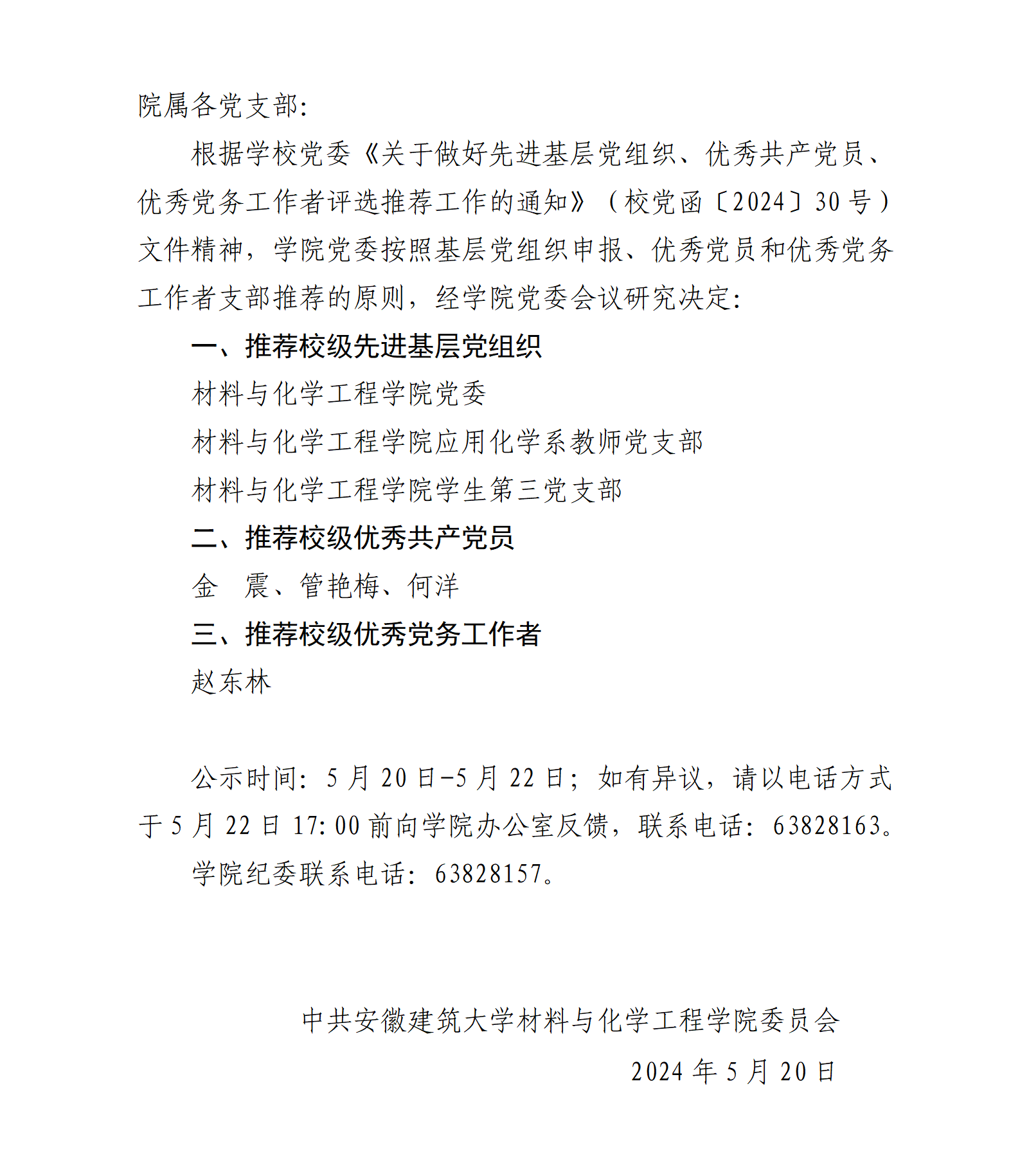 关于推荐优秀基层党组织、优秀党员 和优秀党务工作者评选人选的公示