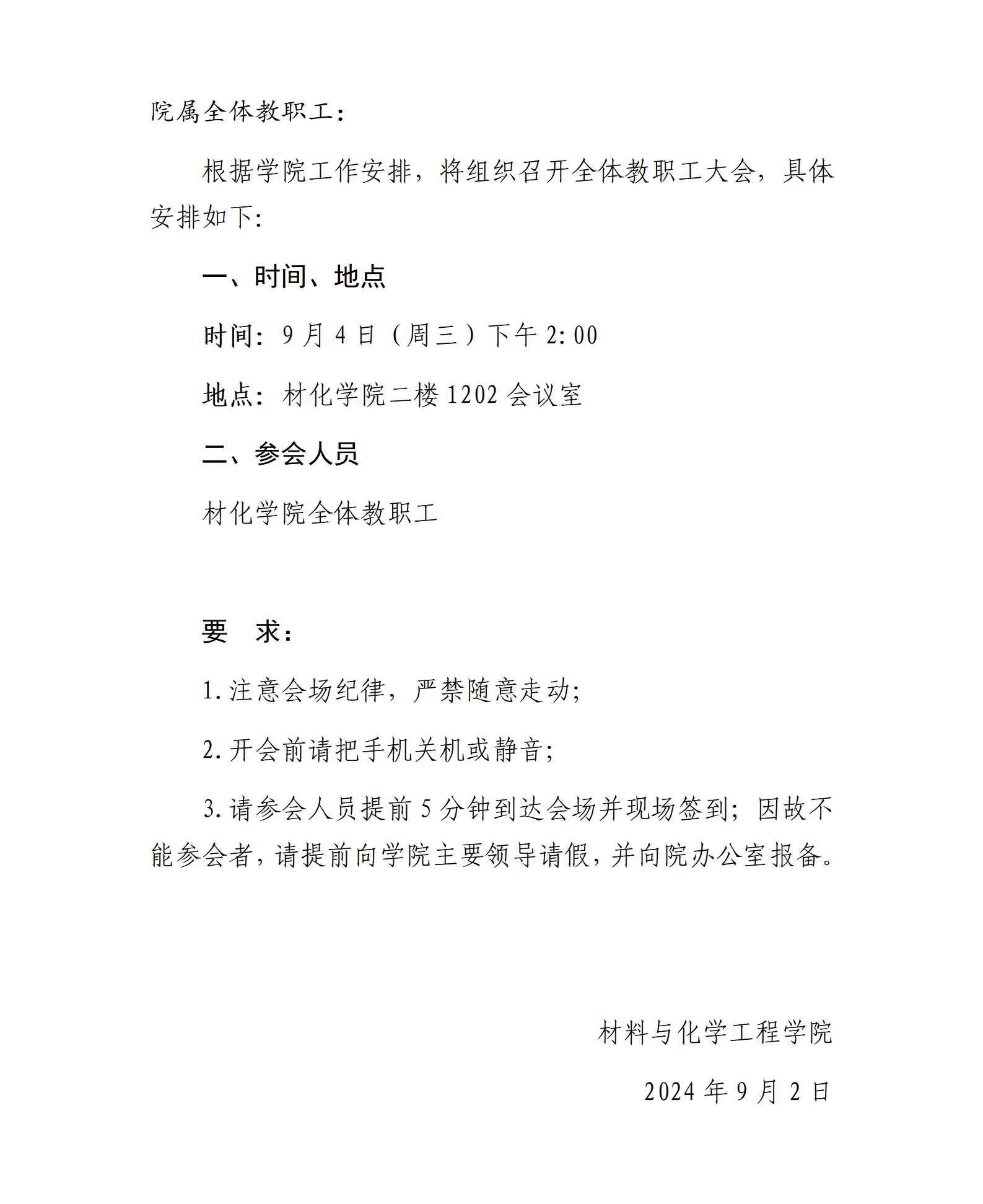 关于召开教职工大会的通知