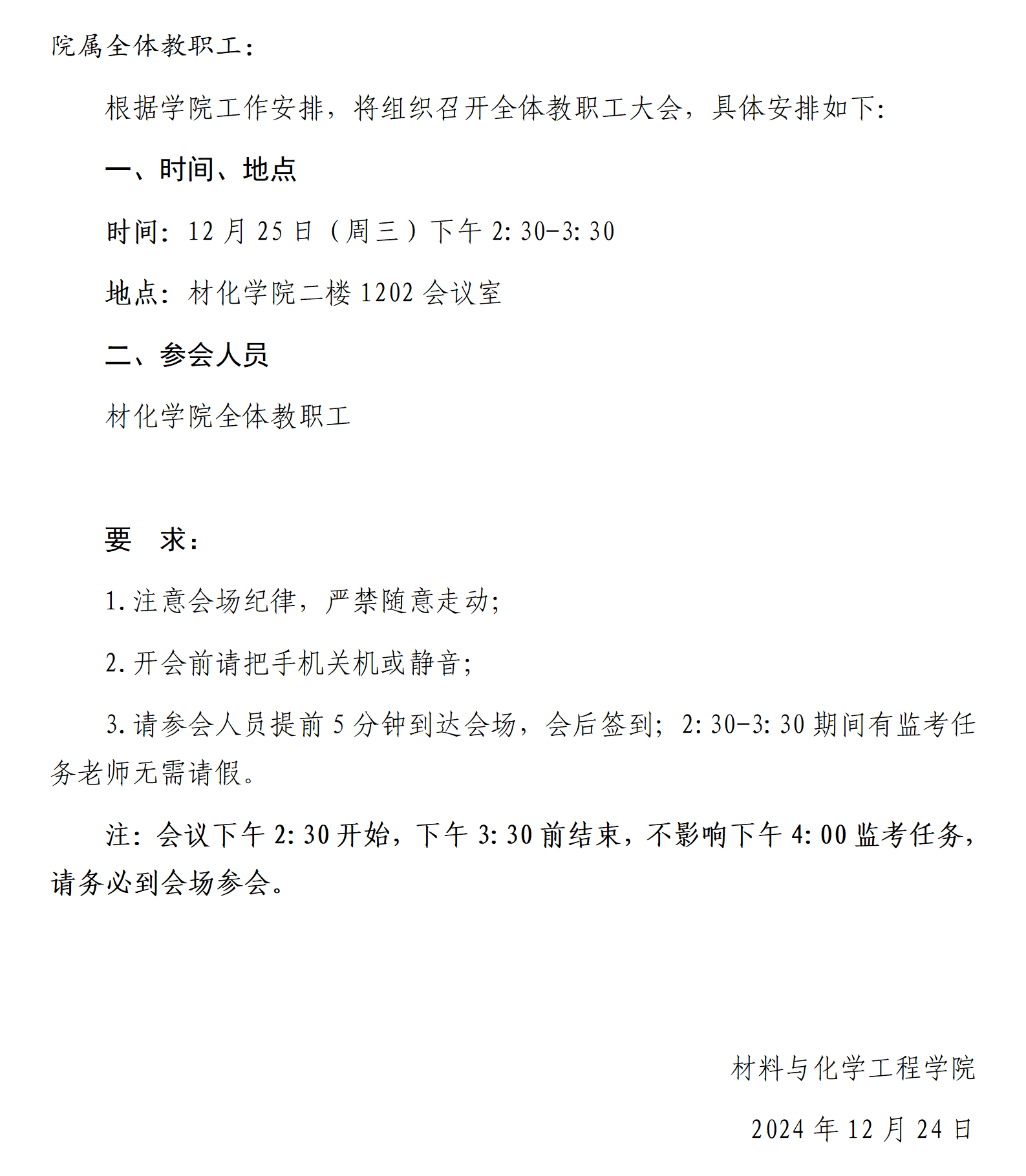 关于召开教职工大会的通知