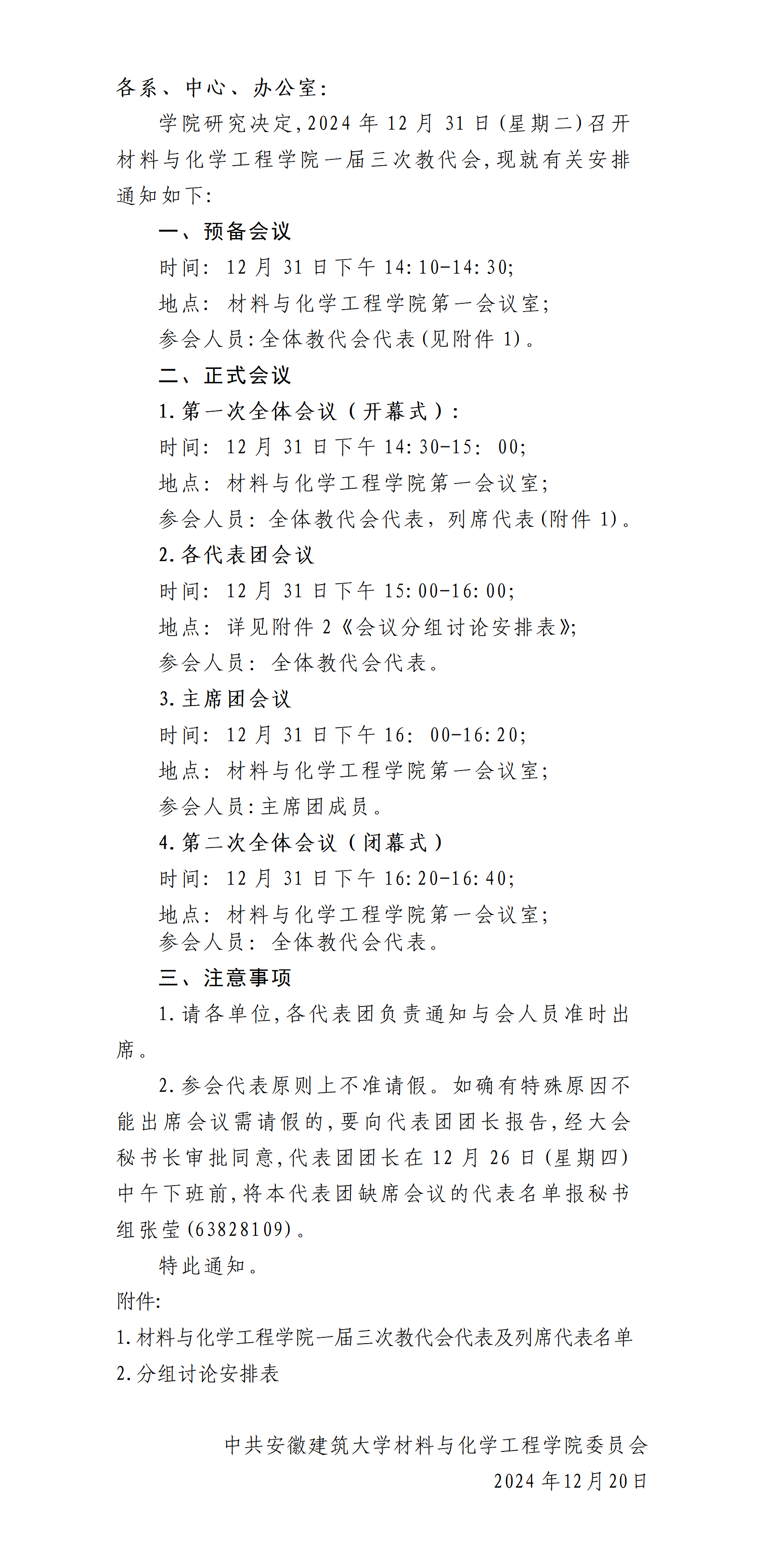 关于召开材料与化学工程学院一届三次教代会的通知