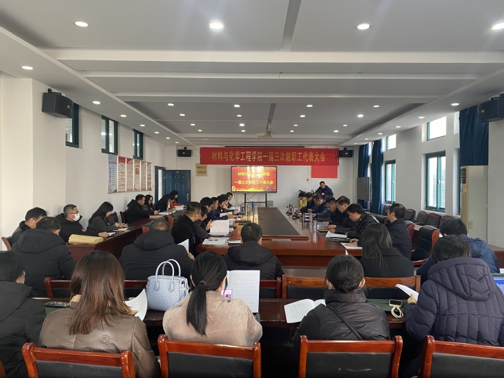 本网讯 12月31日下午,材料与化学工程学院一届三次教代会在学院大会议室胜利召开,学院党政班子全体成员出席会议,来自学院各系、中心的正式代表以及列席代表也齐聚一堂,共绘学院发展蓝图。