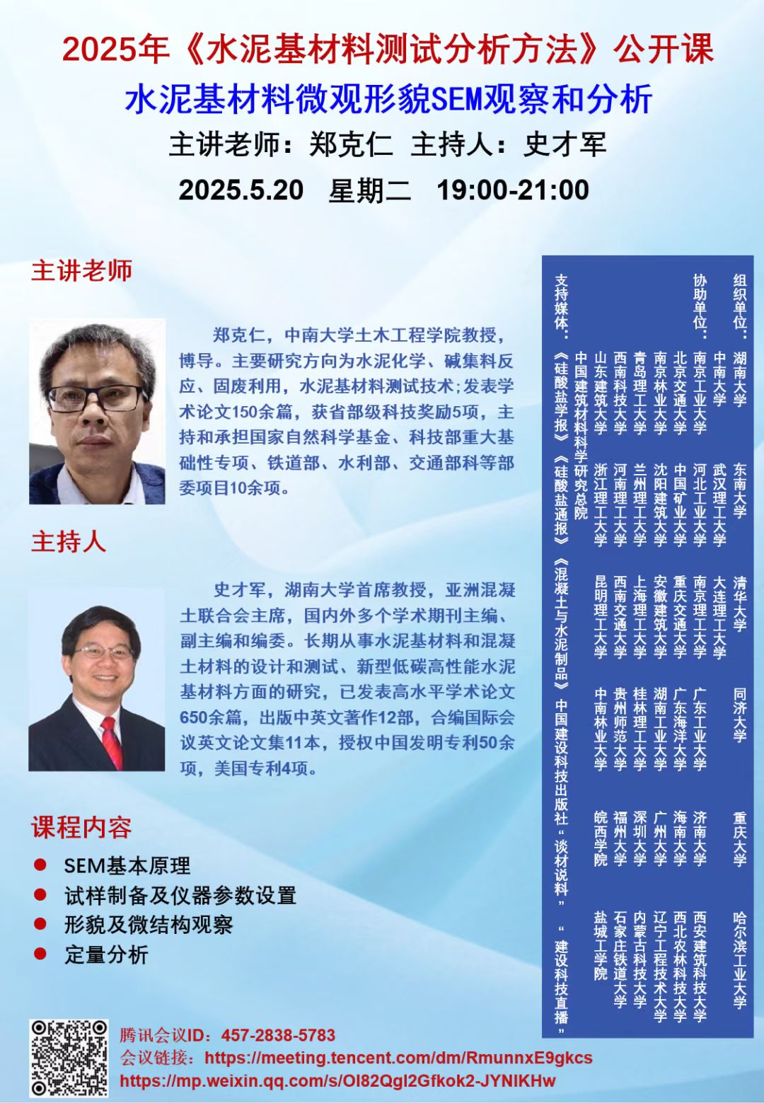 2025年《水泥基材料测试分析方法》公开课——水泥基材料微观形貌SEM观察和分析