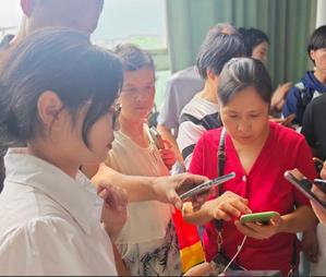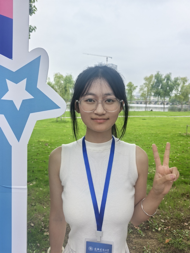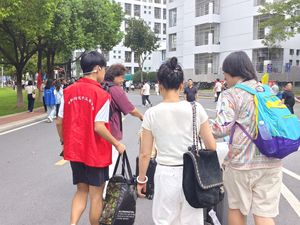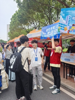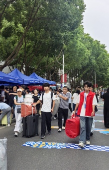 在志愿者忙碌的红色海洋中有一抹靓丽的白色,她是25级无机非新生张小萌,报到时就被迎新的热烈浪潮感染,报导后立即与辅导员取得联系,积极加入迎新志愿者的人群。她热情地和我们分享:“我来自山东,选择的是无机非金属材料专业,感觉学校很大,湖景很漂亮,希望自己在大学继续加油,可以取得优异的成绩,努力评优评秀,未来想考研,走科研道路。”我们期待她在未来的发展道路上如迎新日般闪耀。