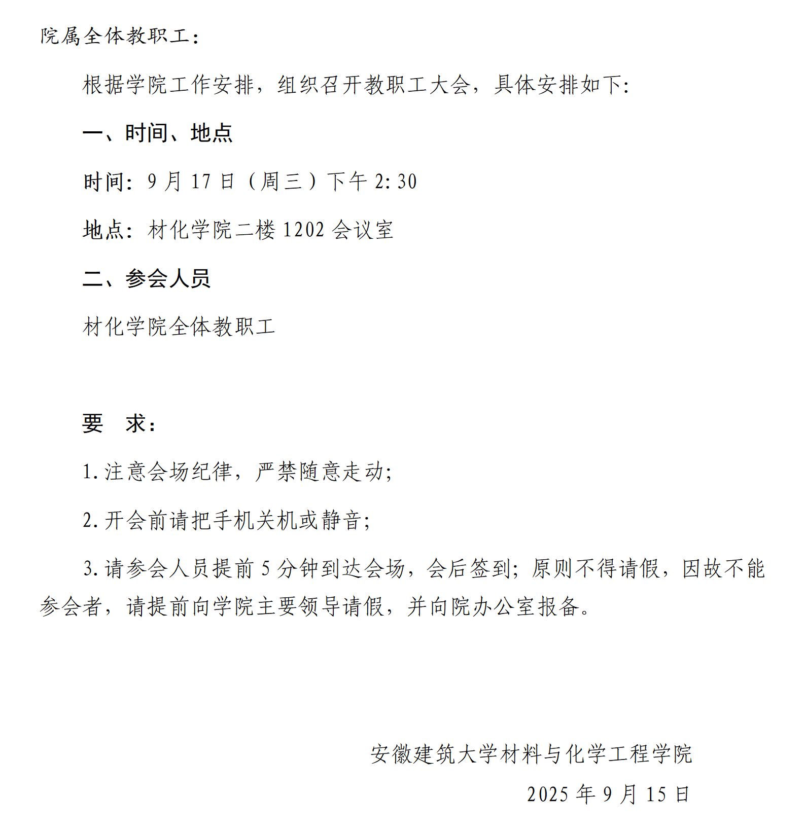 关于召开教职工大会的通知