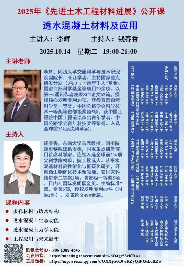 2025年《先进土木工程材料进展》公开课——透水混凝土材料及应用