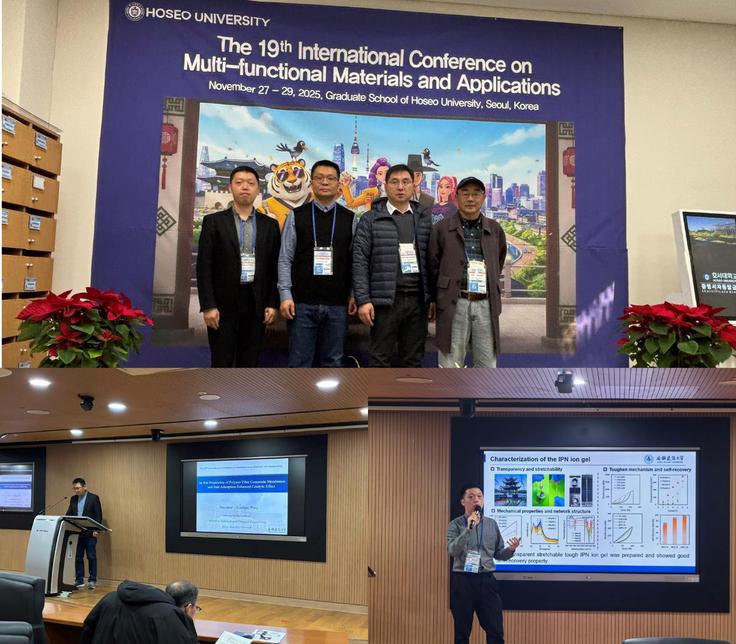 本网讯 2025年11月27日至30日,材料与化学工程学院教师冯绍杰、张峰君、王献彪、张劲辉应邀赴韩国首尔,参加第十九届多功能材料与应用国际会议。本次会议由韩国湖西大学承办,围绕催化材料、环保材料、先进复合材料、建筑功能材料等前沿领域的研究与应用展开深入交流,吸引了来自中国、韩国、日本、印度、泰国、马来西亚、印度尼西亚等国家近百位材料领域专家学者与会。