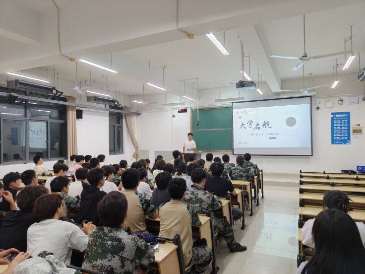 本网讯 9月29日,材化学院在逸夫楼5204教室举办第十四期“材思月悦谈”,2023级高分子材料与工程专业学生陈帅围绕“如何度过大学生活”,为大一新生开展适应性分享,助力新生平稳衔接高中与大学阶段。