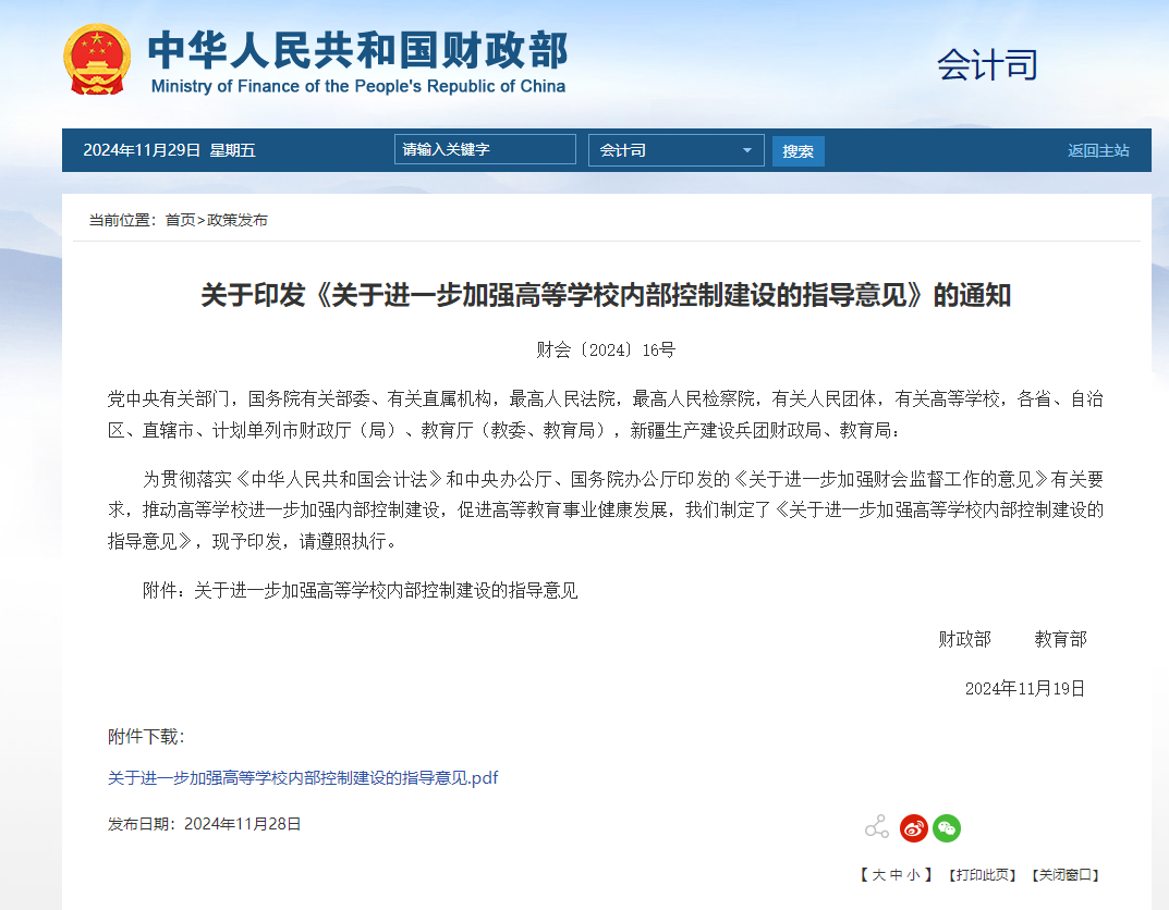 关于进一步加强高等学校内部控制建设的指导意见