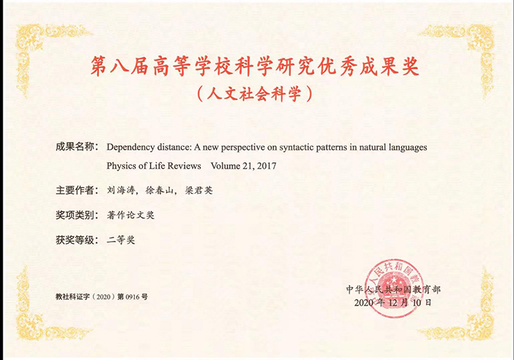 七是政治引领推进学校哲社工作发展进入新阶段。“十三五”期间,学校以习近平新时代中国特色社会主义思想为指导,加强对学校社科工作的政治引领,发挥哲学社会科学在立德树人教育培养中的重要作用,扎实做好新形势下学校哲学社会科学工作。2019年,成立了beat365在线唯一官网哲学社会科学联合会,充分发挥社科联桥梁纽带作用,协同推进哲学社会科学各学科建设。人文社科类科研项目立项300余项,总经费约960万元。近5年来,学校充分发挥智库作用,主持为省领导决策提供服务的《安徽省房地产去库存应用对策研究》等多项课题的研究工作;主持编制《安徽省建筑业“十三五”发展规划》等4项省住建厅“十三五”专项规划;发布政策、咨询报告6份。在疫情防控及疫后恢复经济社会建设、健全国家应急管理体系、完善重大疫情防控救治体系、健全应急物质保障体系等方面开展研究,完成并上报7份高质量研究报告至安徽省委宣传部。2020年底beat365官网徐春山教授与浙江大学刘海涛教授、梁君英教授合著的论文“Dependency distance: A new perspective on syntactic patterns in natural languages ”获第八届高等学校科学研究优秀成果奖(人文社会科学)交叉学科二等奖。