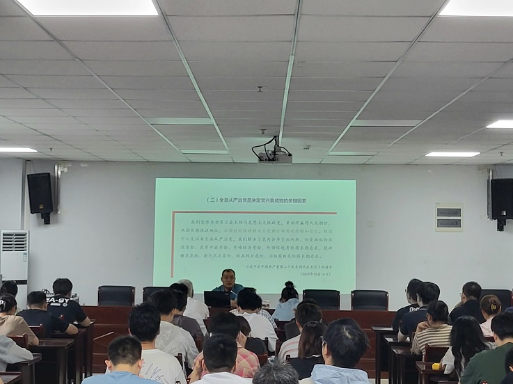 孙长城强调了《中国共产党纪律处分条例》的重要意义,对新修订的《中国共产党纪律处分条例》进行了系统、深入、全面的解读,指出《条例》是关于党的纪律建设的基础性法规,是有效约束和规范党员干部言行的重要党内法规,对严肃党的纪律、纯洁党的组织、维护党的团结具有重要意义。用现实范例指明严守党纪的重要性和必要性。同时他寄语广大学生党员在严守党的纪律的同时要发挥模范带头作用,切实提高自己的思想政治素质,在校好好学习专业知识,努力掌握好科学文化知识,为将来更好地为人民服务、为祖国服务打下坚实基础。