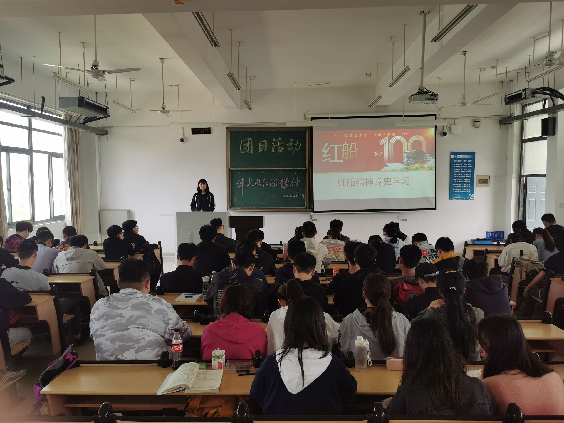 各支部以“伟大红船精神”为题,通过“红船精神”的核心内涵、历史定位、育人价值三个方面生动再现了1921年平均年龄只有28岁的13位党员代表宣告中国共产党成立的情景。从此中国共产党沿着红船的航向,以开天辟地、敢为人先的首创精神,带领全国各族人民大胆探索、不懈奋斗,开辟了中国特色社会主义的伟大事业。