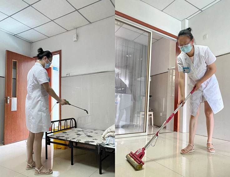 临近秋季开学,校医院切实落实隔离区域全面消杀工作,工作人员为隔离观察室提前晾晒被褥,以确保开学时的正常使用,为后期隔离同学创造安全舒适的环境,全力做好医疗保障工作。(文/图:王丽;审稿:唐黎)