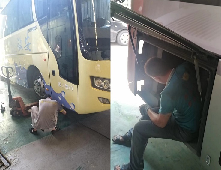 后勤服务集团校车队利用暑假时间集中检查车辆运行情况,由专业人员对制动、转向、传动、轮胎、灯光系统和灭火器、安全带、安全锤等设施设备进行全面检查,对校车进行统一的保养,以便开学后为乘车师生提供更加优质的校车服务。(文/图:张川;审稿:唐黎)