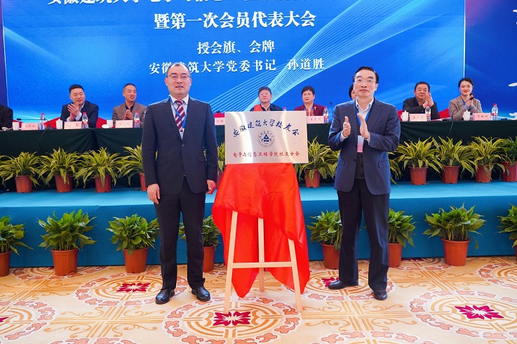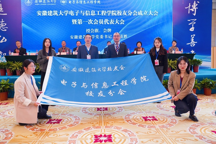 校党委书记、校友会会长孙道胜和电子与信息工程学院党委书记、校友分会会长孙长城共同为电子与信息工程学院校友分会揭牌和授旗。出席领导为beat365在线唯一官网电子与信息工程学院校友分会第一届理事会会长、副会长、秘书长、监事长、监事颁发聘书。