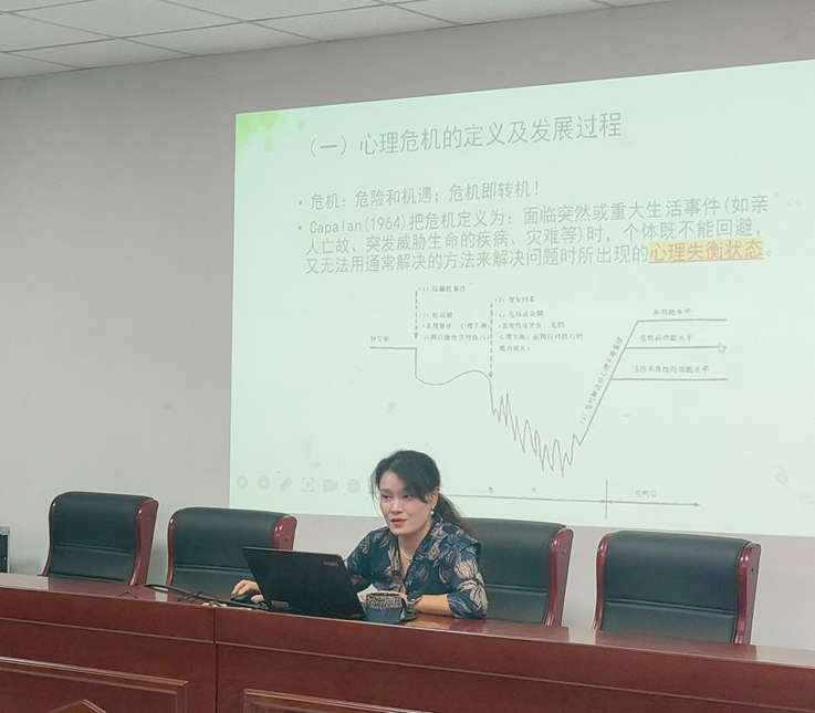 丁媛媛介绍了心理危机的定义、特点及其在大学生群体中的常见表现形式,并详细讲解了心理危机排查的方法和技巧。她强调,心理危机是每个人在成长过程中都可能遇到的一种心理状态,了解并识别这些危机对于及时干预至关重要。
