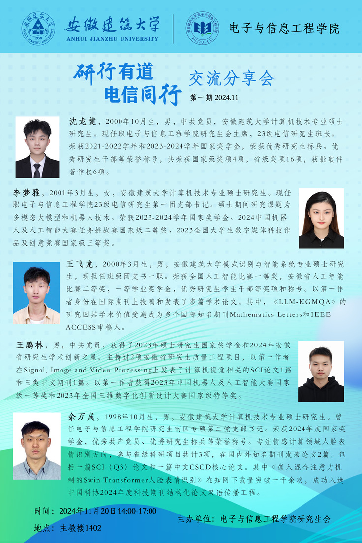 电信学院第一期“信”青年说“研途”|榜样引领榜样引领优秀研究生交流分享会活动预告