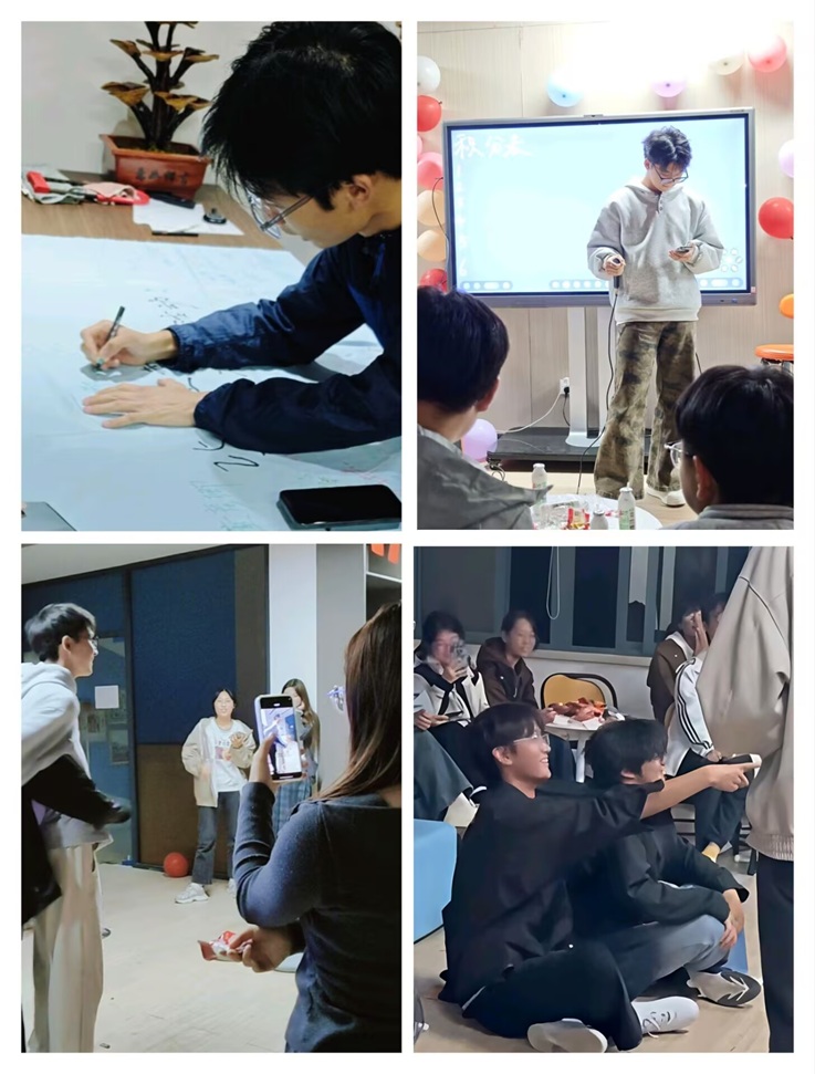 活动开场,主持人结合人工智能专业学习特点,点明心理健康对后续专业探索与团队协作的重要性,鼓励新生主动交流、突破自我。随后,班委们带领新生开启“破冰之旅”,设计“语言分组”、“听歌识曲”,“你画我猜”等特色游戏——“语言分组”将专业术语融入互动,新生们随机抽取卡片后,需寻找持有相同术语或能听懂该术语的同伴组成小组,通过分组为后续活动的开展奠定了良好的团队基础;“听歌识曲”遴选了跨年代、多风格的经典曲目,点燃了现场的热情,让新生们在共同的音乐记忆中产生共鸣,进一步增强了团队的凝聚力;“你划我猜”将活动氛围推向顶点,表演者们尽情发挥肢体语言天赋,或夸张模仿、或巧妙示意,猜题者们则凝神思考、相互提示,传递出信任与默契。