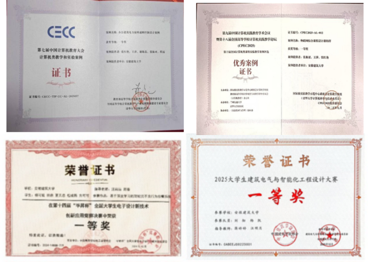 优化分类培养矩阵,深化专业内涵发展。统筹推进电子信息工程、计算机科学与技术、建筑电气与智能化三个专业的工程教育认证申报工作,强化与南信大校际协同,打造“拔尖创新型”人才,面向全校增设“人工智能大模型技术”微专业,培养“专业+IT”复合型人才。推动课程体系优化,实现建设成果突破。《程序设计基础》《操作系统》《微机原理与接口技术》3门课程成功入选第三批国家级一流本科课程。与华为、青岛青软晶芒等知名企业深度合作,将企业真实项目、技术案例、职业认证内容融入课程设计,推动课程内容与行业标准对接。聚焦教学能力提升,建强“双师型”教师队伍。组织教师参与国家级虚拟教研室与示范课学习,线下开展“深研一门课,上好一门课”专项培训,选派骨干教师参与华为、青岛青软晶芒等企业专项培训,15名教师获工信部IC版图设计师(高级)、FPGA应用开发工程师(高级)及华为HCIP等多项高级职业资格认证,师资实践能力与行业适配度显著增强。促进师生双向成长,彰显教育教学实效。在教学比赛中,获国家级奖项11项,其中特等奖2项,一等奖4项,获省级奖项5项;获安徽省教学成果奖二等奖1项、山东省教学成果奖二等奖1项;13名学生获免试资格,拟录取进入国内知名高校深造;在各类学科竞赛中,获二类奖项37项、三类奖项166项;成功举办2025大学生建筑电气与智能化工程设计大赛,人才培养质量成效显著。