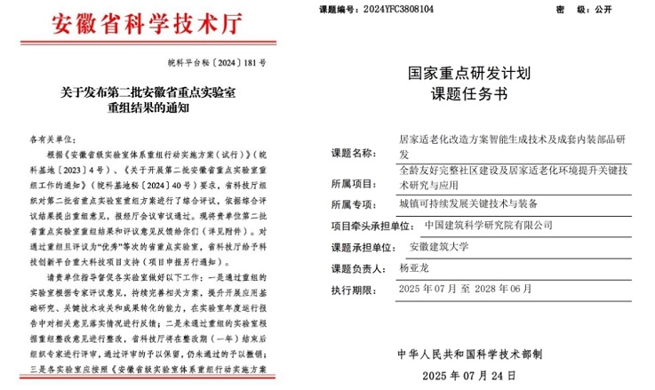 夯实科研底盘,双轮驱动初见成效。在科研平台与项目研究方面,学院聚焦关键技术攻关与学科交叉融合,持续加强项目研究与平台整合。“十四五”期间,学院累计获批纵横向科研项目130余项,其中国家重点研发计划课题、国家自然科学基金项目等国家级项目9项,科研经费累计到账3047万元。同时,安徽省智能建筑与建筑节能重点实验室顺利完成重组,平台建设任务圆满收官,为学科发展与科研团队建设提供了坚实支撑。