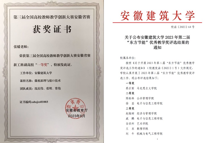 《建筑电气(第二版)》获评全国教材建设奖二等奖,6部新编教材完成编写校稿,部分已申报国家级规划教材。学院常态化开展教研交流,学院教师斩获全国青年教师讲课竞赛、教学创新大赛等多项大奖。累计获批省级质量工程项目79项、校级61项、教育部协同育人项目4项,获安徽省教学成果奖一等奖2项。课程思政建设扎实推进,通过教研、引智、赛课等举措,实现知识传授与价值引领有机统一。