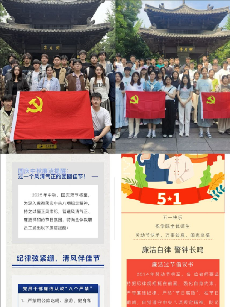 文化浸润扬清风,崇洁育德筑防线。坚持教育为先、预防为主,构建常态化警示教育与特色廉洁文化培育相结合的工作格局。在元旦、春节、毕业季等重要节点精准推送廉洁提醒,组织观看《永远吹冲锋号》《零容忍》等专题片,通过典型案例强化震慑效果。组织师生党员赴包公园、省党风廉政教育基地开展廉洁教育活动。深化“以案促改”,扎实开展酒驾醉驾等专项警示教育。举办“清风扬正气”廉洁征文比赛、毕业生廉洁党课等活动,打造“线上+线下”宣传矩阵,推动廉洁价值理念融入师生日常。