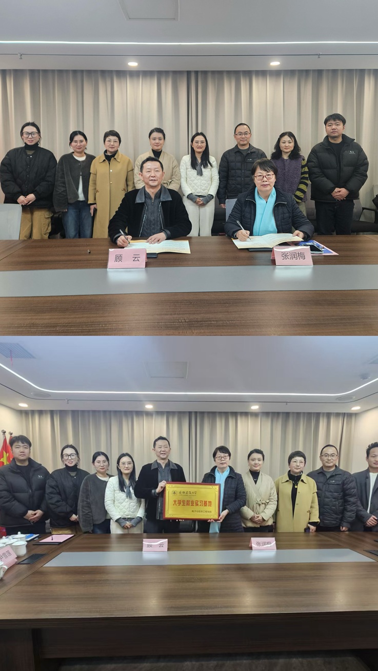 座谈会后,双方代表正式签署了“大学生就业实习基地”合作协议,并共同为基地揭牌。此次签约授牌标志着电信学院与合肥云歌信息科技有限公司在校企合作方面迈出了实质性步伐,为后续深入开展人才联合培养、实习就业推荐奠定了坚实基础。