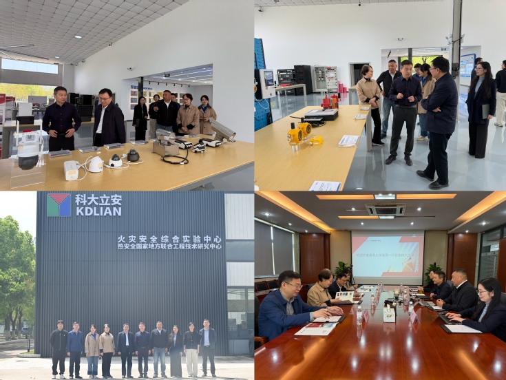 随后,王佐才一行来到合肥科大立安安全技术有限责任公司。作为依托中国科学技术大学火灾科学国家重点实验室组建的高新技术企业,科大立安长期专注于特殊场所火灾早期探测与自动灭火系统研发,企业技术整体水平处于世界领先地位。