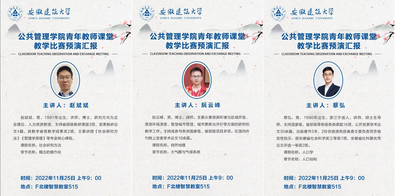 公管学院长期致力于构建“备课、听课、练课、磨课、赛课”五位一体式青年教师课堂教学能力提升系统,定期不定期地开展系列活动,通过集中化备课、示范化听课、仿真化练课、精细化磨课、常态化赛课,助力打造高素质专业化青年教师队伍。(作者:谢梦飞审核:黄佳豪)