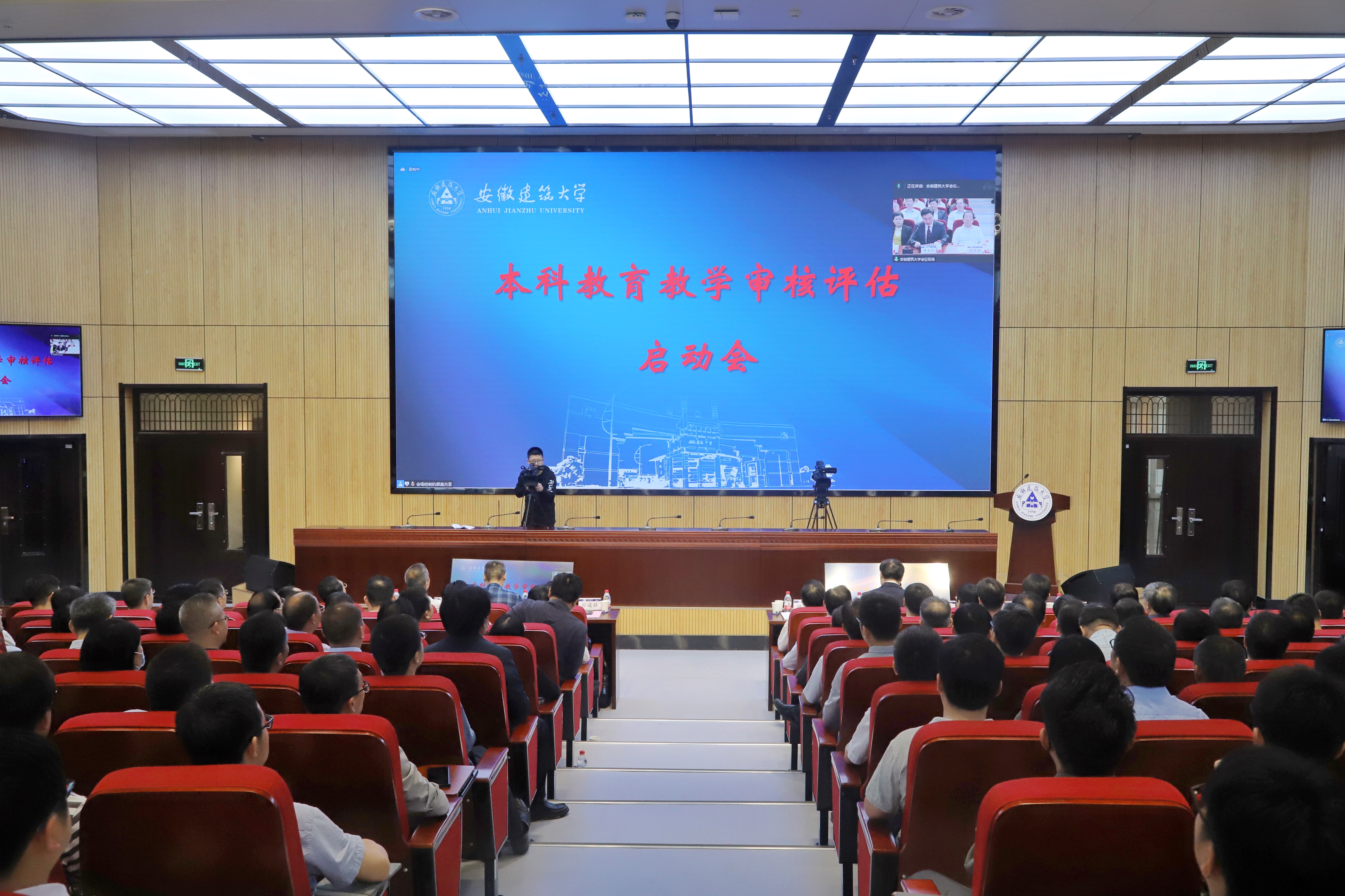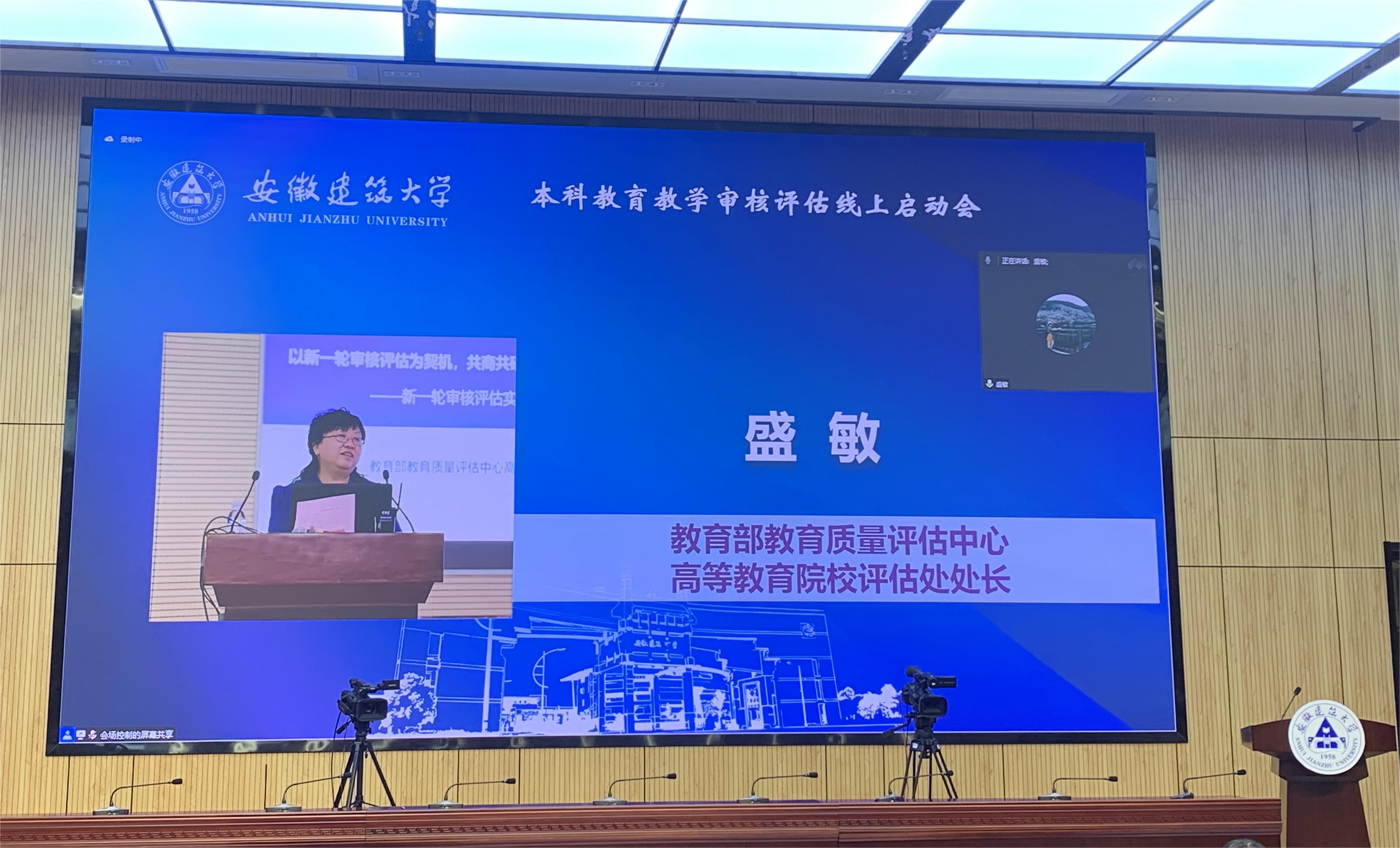 本网讯 5月27日上午,beat365在线唯一官网本科教育教学审核评估启动会在南校区实训综合楼报告厅举行,会议采用线上线下相结合的形式开展。教育部教育质量评估中心高等教育院校评估处处长盛敏,以上海科技大学常务副校长印杰教授为组长、同济大学原常务副校长陈以一教授为副组长的全体专家组成员及项目管理员、秘书组线上参会;安徽省委教育工委委员、省教育厅副厅长储常连,高教处副处长朱永国,学校党政领导,各职能部门主要负责人、各教学单位班子成员、校督导组成员、教师代表、辅导员代表、学生代表及评建办全体人员线下参会。会议分两个阶段进行,第一阶段由beat365在线唯一官网党委副书记、校长黄显怀主持,第二阶段由专家组组长印杰主持。