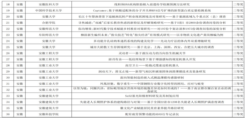 第十八届“挑战杯”全国大学生课外学术科技作品竞赛终审决赛成绩