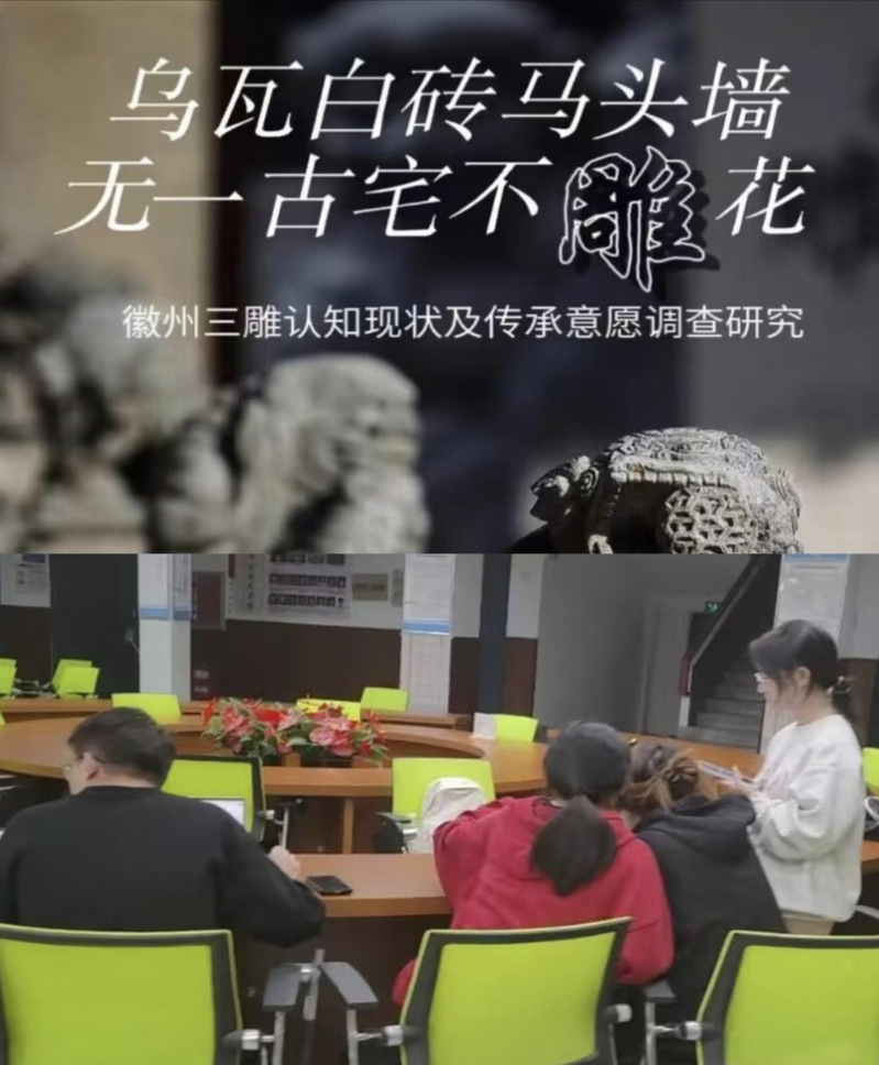 团队成员来自公管学院人力资源管理专业,坚持将专业知识投入社会实践。团队立足学校办学特色,聚焦徽派建筑及其他徽派文化,多次前往黄山、宣城等古徽州地区展开实地调研,挖掘徽文化资源中的美学元素,并积极转化团队调研成果。本次项目前期调研阶段,团队紧扣美育趋势,致力于研究传统徽文化资源,提升徽文化的影响力和认知度,对徽文化美学元素研究奠定了坚实基础,积极动员大学生群体力量,广泛发放美育调研问卷,最终收集1300多份问卷,为项目数据分析与实证研究奠定坚实研究基础。备赛过程中,团队成员保持密切联系,敢想敢说敢做,心往一处想,劲往一处使,不断以高标准要求自己。牢记学校打好“建”字牌,写好“徽”文章的办学使命,建立长期化合作关系,依托学校丰富的徽文化资源,自觉贡献徽文化振兴与繁荣的建大力量。