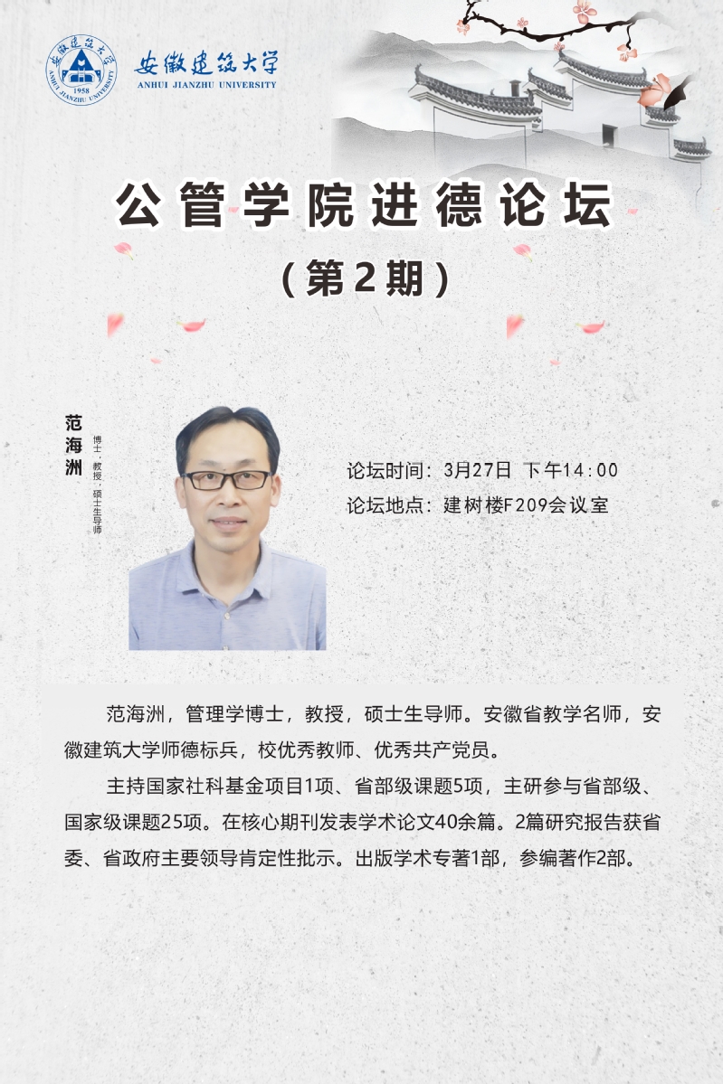 本网讯  为进一步加强师德师风建设,提高教师思想政治素质、职业道德水平,3月27下午,公管学院组织开展师德师风专题讲座《进德论坛》第二期本次讲座由安徽省教学名师、校师德标兵、学院党委委员范海洲教授主讲,学院党委副书记(主持工作)马晓艳主持,全体教职工参与学习。